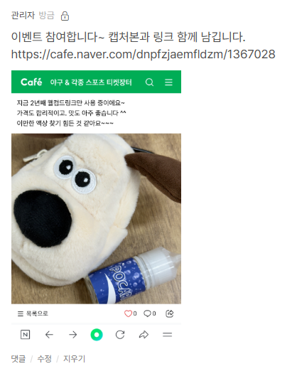 작성 후 현재 보고 계시는 이벤트 게시글 하단에서