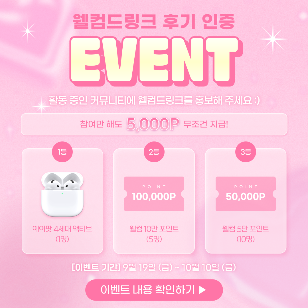 웰컴드링크가 진행하는 이벤트를 확인하고 참여하세요!